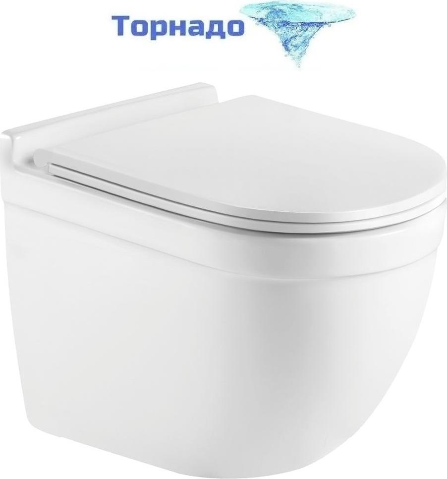Унитаз подвесной безободковый Grossman GR-4483SQ с крышкой микролифт, белый глянцевый (Система смыва торнадо)