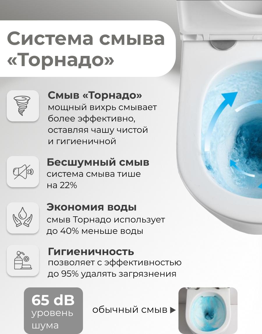 Унитаз подвесной безободковый Grossman GR-4499MSQ с крышкой микролифт, белый матовый (Система смыва торнадо)