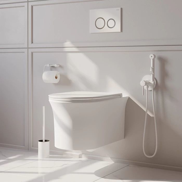 Унитаз подвесной безободковый Iddis Sena SENRDSEi25, каскадный слив, с сиденьем из дюропласта с функциями Soft Close и Easy Fix, цвет белый.
