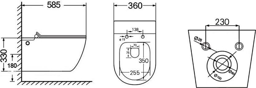 Характеристики унитаз безободковый,унитаз подвесной Abber (AC1105P)