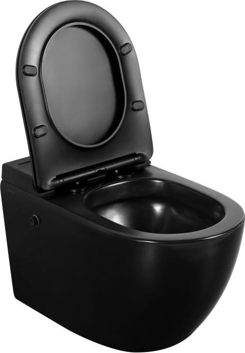 Унитаз подвесной безободковый с импульсным смывом Abber Bequem AC1108PMB с крышкой микролифт, чёрный