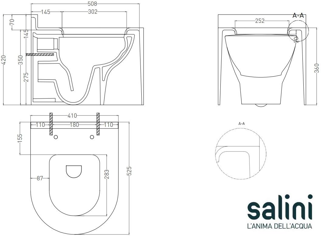 Описание унитаз безободковый,унитаз подвесной Salini 240121KMF