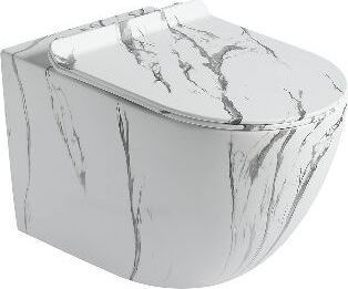 Унитаз подвесной безободковый SantiLine SL-5002MM, сиденье с крышкой микролифт, цвет матовый под мрамор.