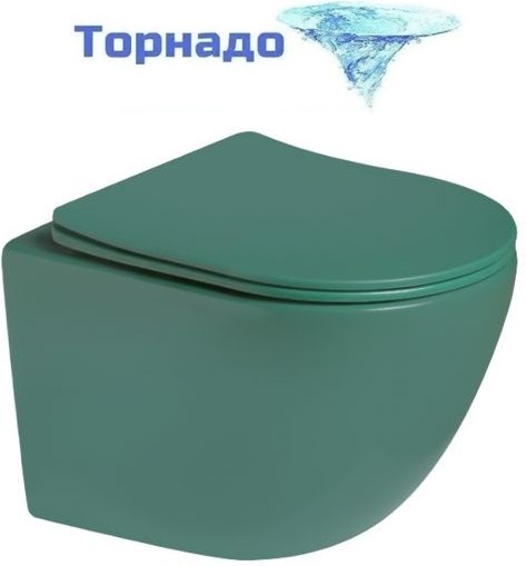 Унитаз подвесной безободковый SantiLine SL-5005T-G с тонкой крышкой микролифт (система смыва Торнадо) зелёный матовый