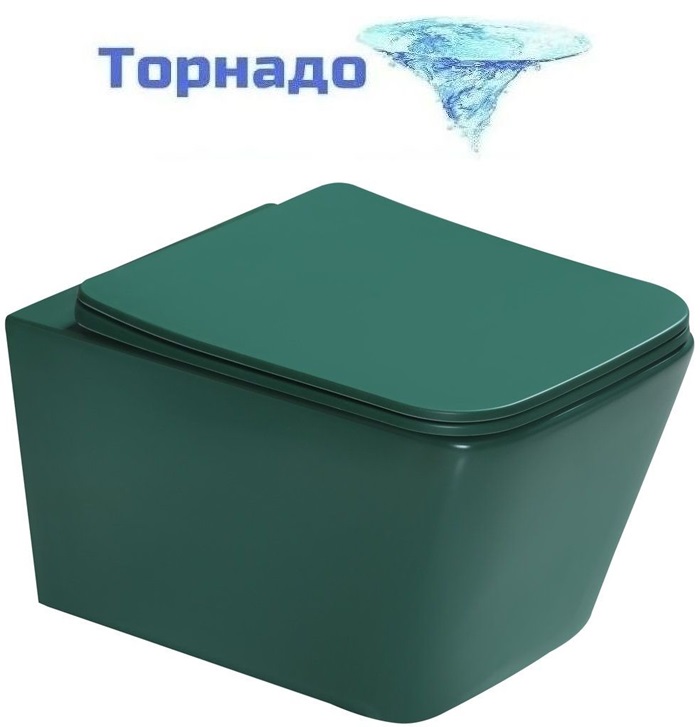 Унитаз подвесной безободковый SantiLine SL-5007T-G с тонкой крышкой микролифт (система смыва Торнадо) зелёный матовый