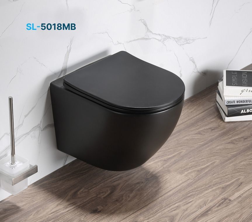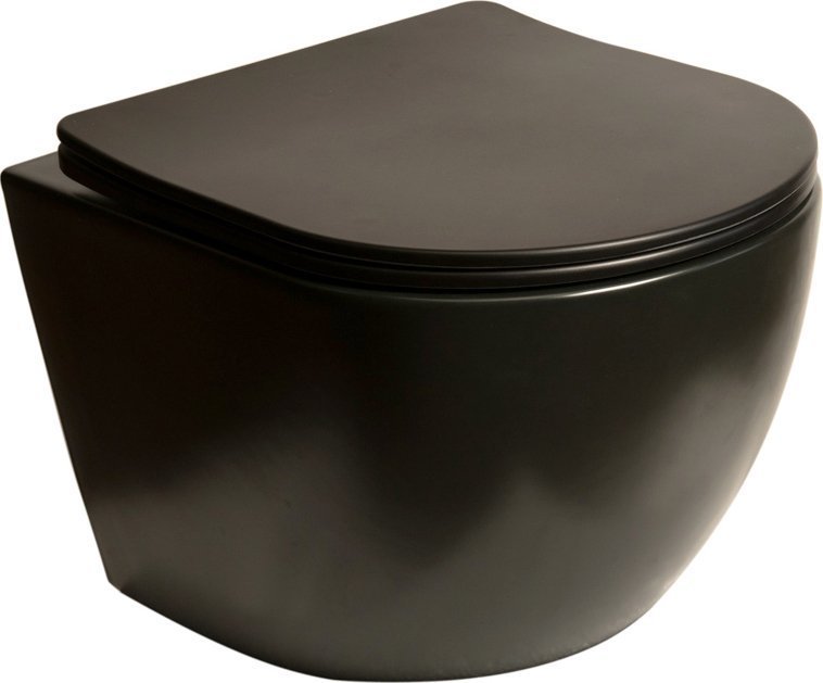 Унитаз подвесной безободковый SantiLine SL-5018MB с крышкой микролифт, черный матовый