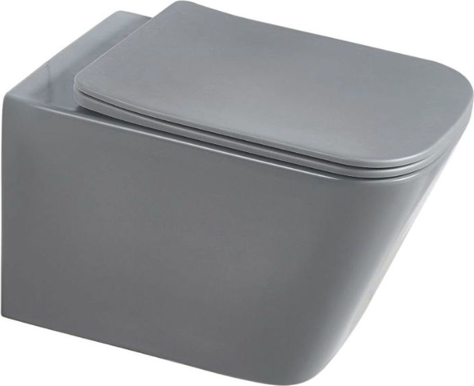 Унитаз подвесной безободковый Sole Cube 2 Grey, сиденье с тонкой крышкой микролифт. Цвет серый.