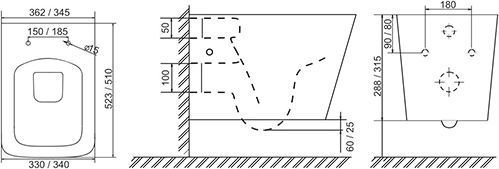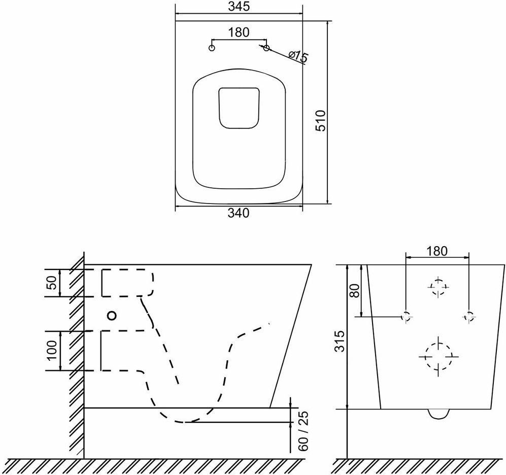 Характеристики унитаз безободковый,унитаз подвесной Sole (УТ000085188)