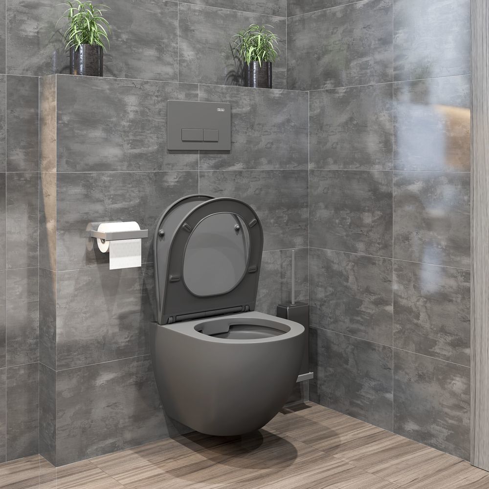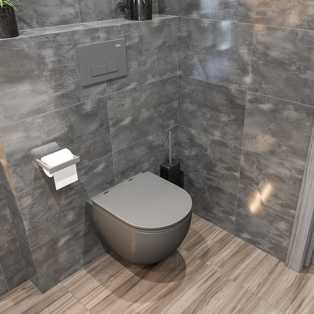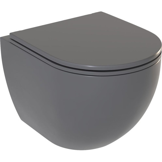 Унитаз подвесной безободковый Sole Pandora 2 Grey, сиденье с тонкой крышкой микролифт. Цвет серый.