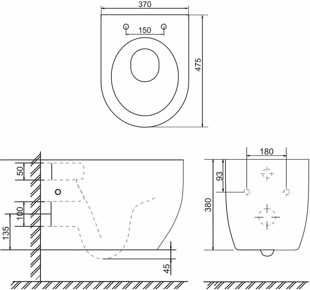 Характеристики унитаз безободковый,унитаз подвесной Sole (УТ000081755)