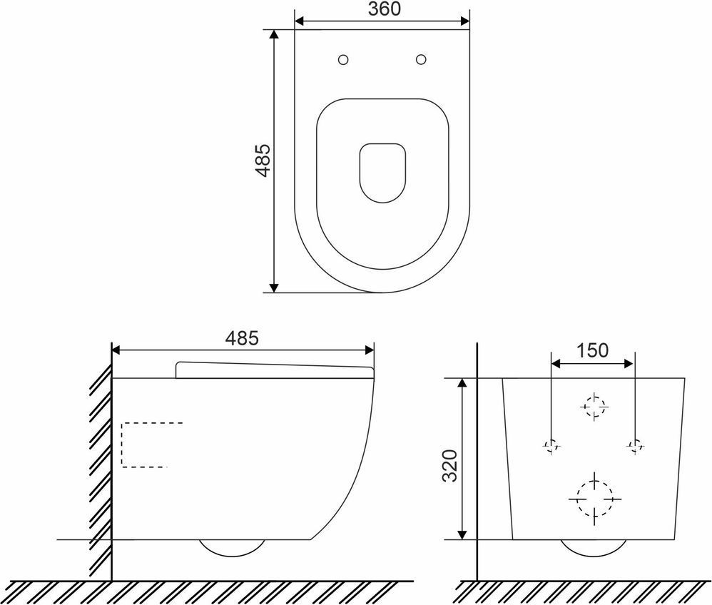 Характеристики унитаз безободковый,унитаз подвесной Sole (УТ000090239)