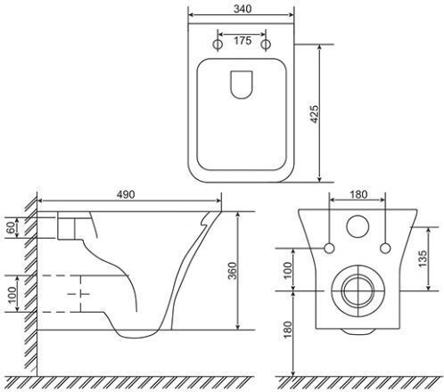 Характеристики унитаз безободковый,унитаз подвесной Sole (УТ000051492)