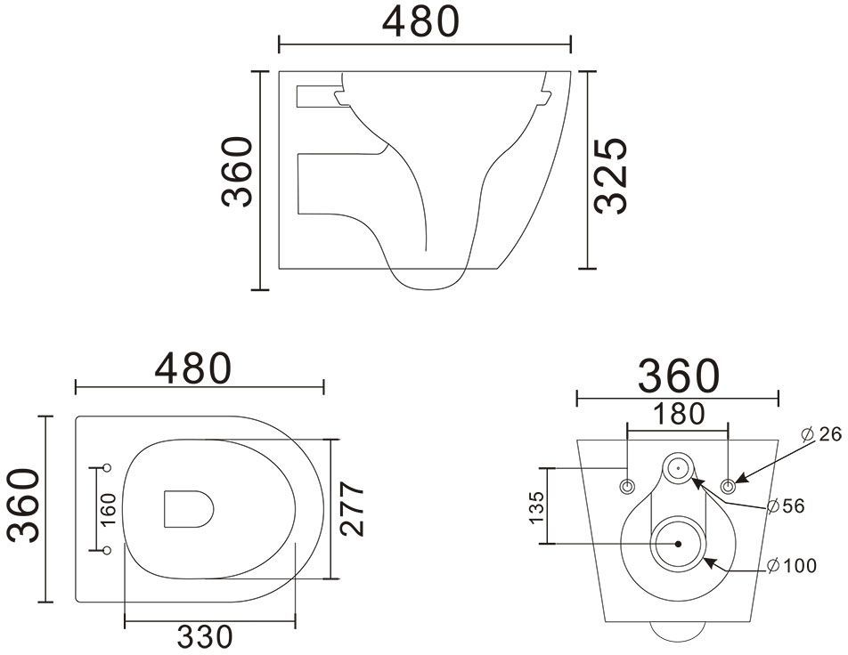Характеристики унитаз безободковый,унитаз подвесной Veconi (VAN-48TB)
