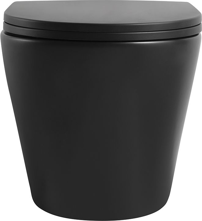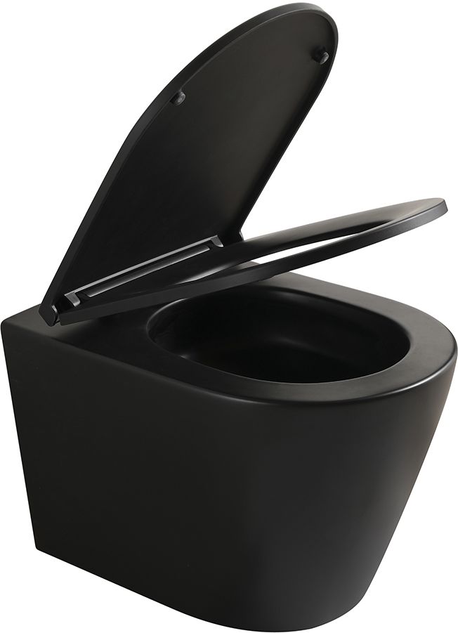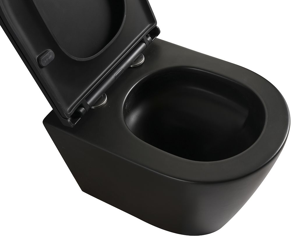 Унитаз подвесной безободковый Veconi Ando VAN-48TB, сиденье с тонкой крышкой микролифт в комплекте, цвет чёрный матовый.