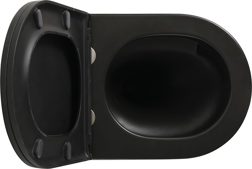Унитаз подвесной безободковый Veconi Ando VAN-48TB (Система смыва торнадо) с тонкой крышкой микролифт, чёрный матовый