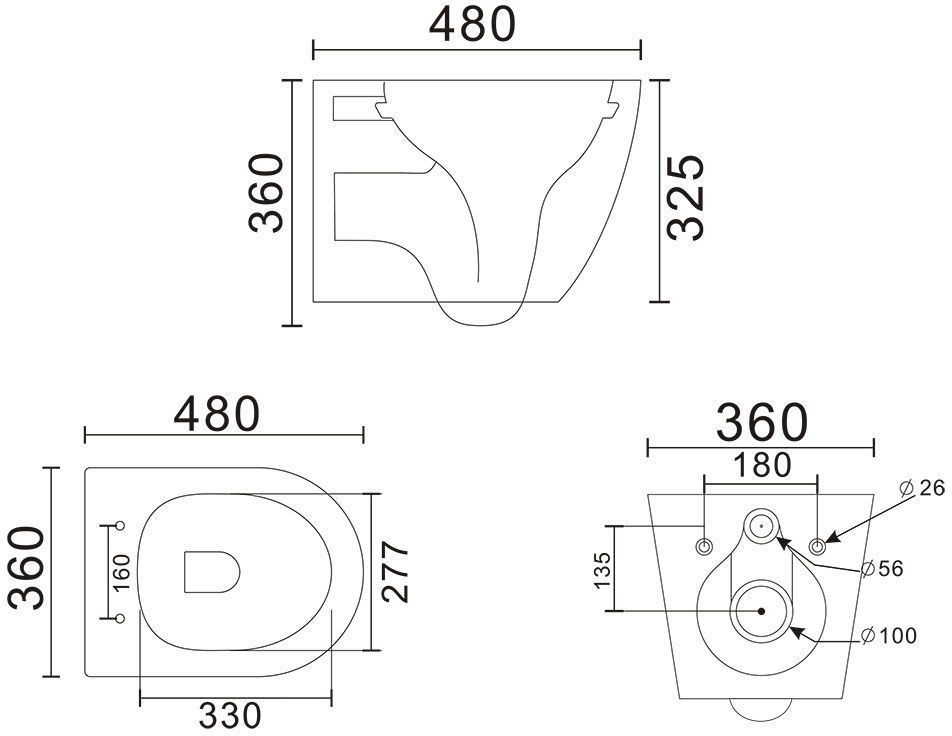 Характеристики унитаз безободковый,унитаз подвесной Veconi (VAN-48TGR)