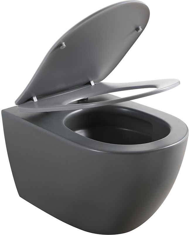Унитаз подвесной безободковый Veconi Ento VEN-52TGR (Система смыва торнадо) с тонкой крышкой микролифт, серый матовый
