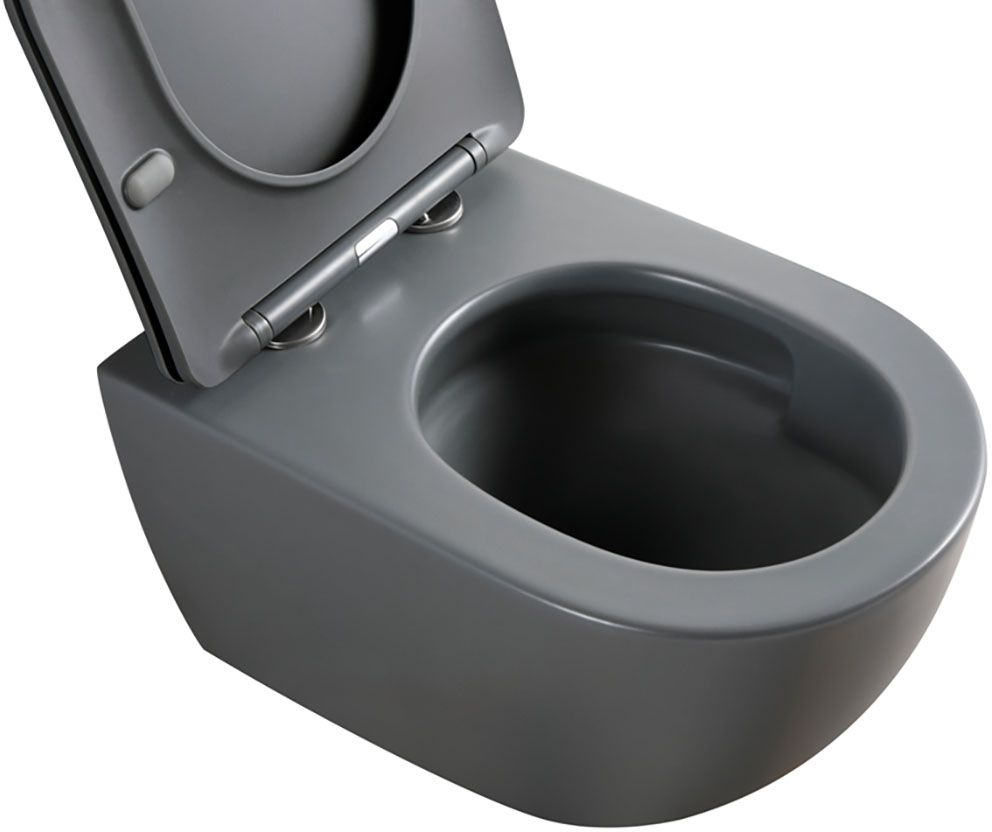 Унитаз подвесной безободковый Veconi Ento VEN-52TGR, сиденье с тонкой крышкой микролифт в комплекте, цвет серый матовый.