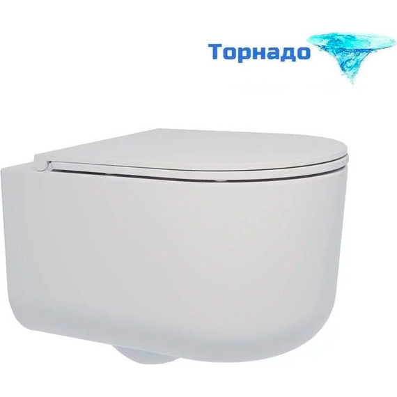 Унитаз подвесной безободковый Veconi Leggero Tornado VCN3-49T (Система смыва торнадо) с крышкой микролифт, цвет - белый.