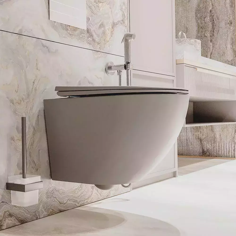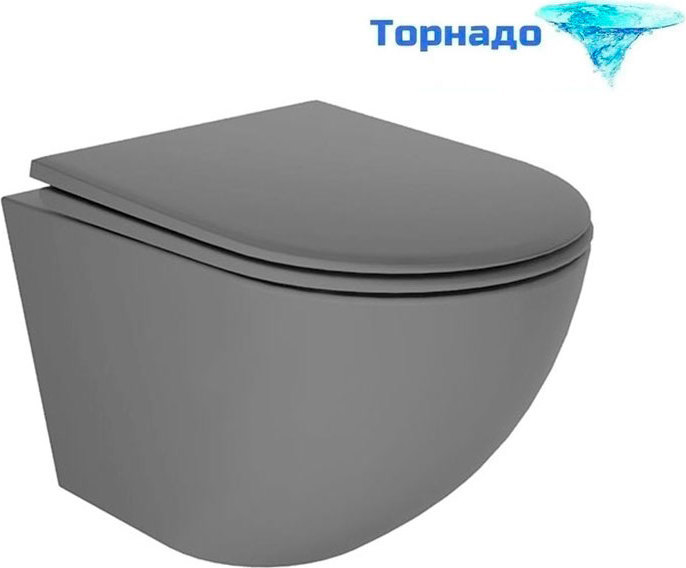 Унитаз подвесной безободковый Veconi Moro VMO-48TGr (Система смыва торнадо) с крышкой микролифт, цвет - серый.