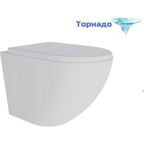 Унитаз подвесной безободковый Veconi Tondo Tornado VCN1-52T (Система смыва торнадо) с крышкой микролифт, цвет - белый.