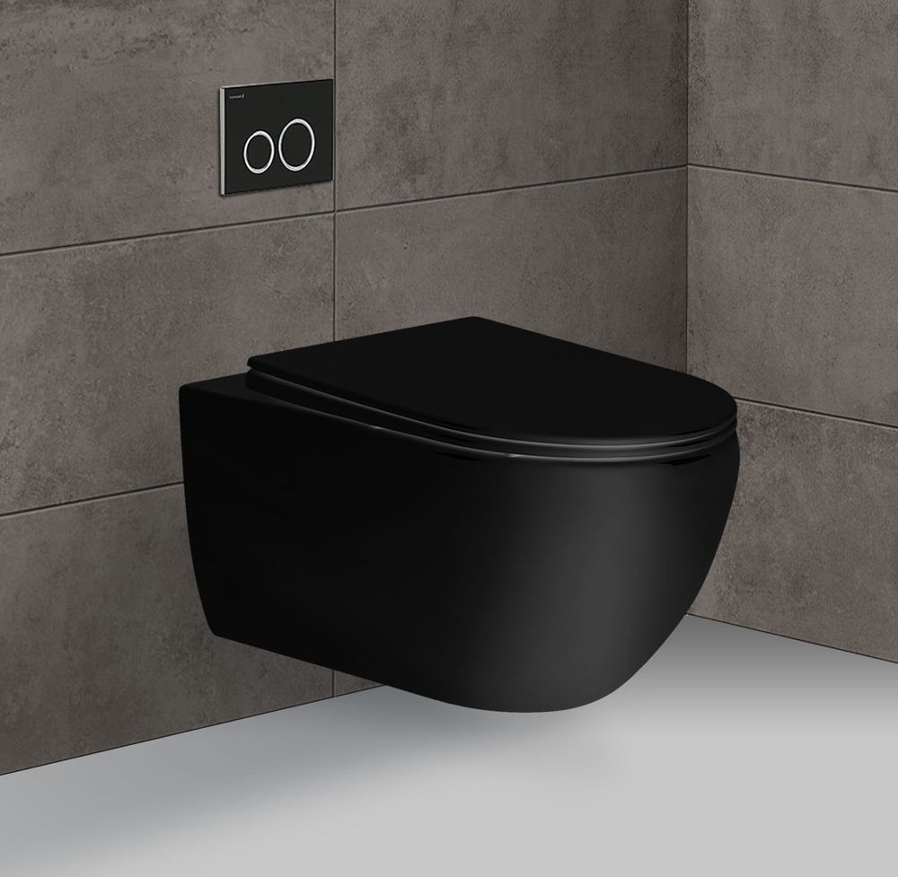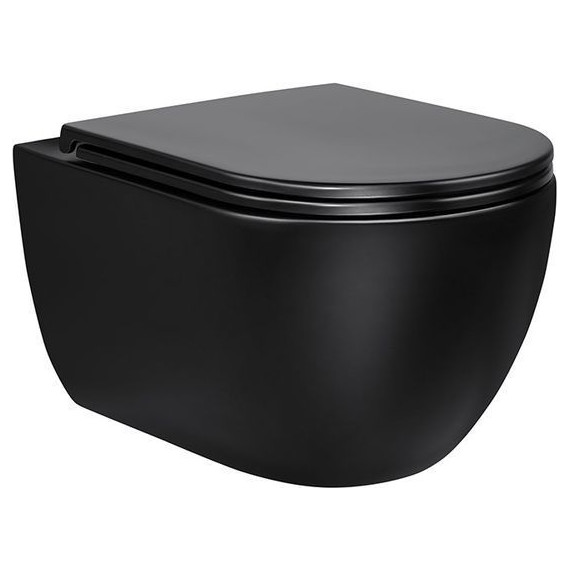 Унитаз подвесной безободковый Vincea Evo VT1-34MB, в комплекте быстросъемное ультратонкое сиденье soft-close, цвет - черный матовый.