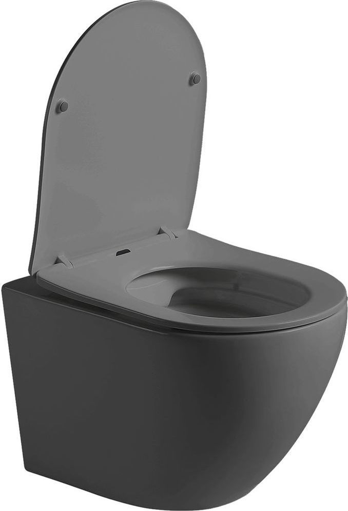 Унитаз подвесной безободковый Vincea Globo VT1-14SMA с тонкой крышкой микролифт, антрацит матовый