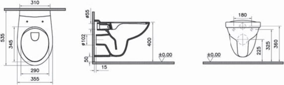 Характеристики унитаз безободковый,унитаз подвесной Vitra (7855B003-0075)