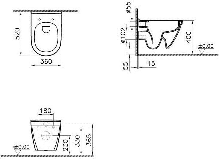 Характеристики унитаз безободковый,унитаз подвесной Vitra (7740B003-0075)