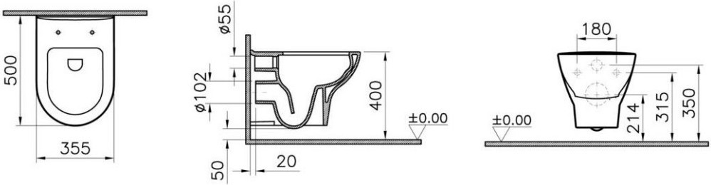Характеристики унитаз безободковый,унитаз подвесной Vitra (5795B003-6077)