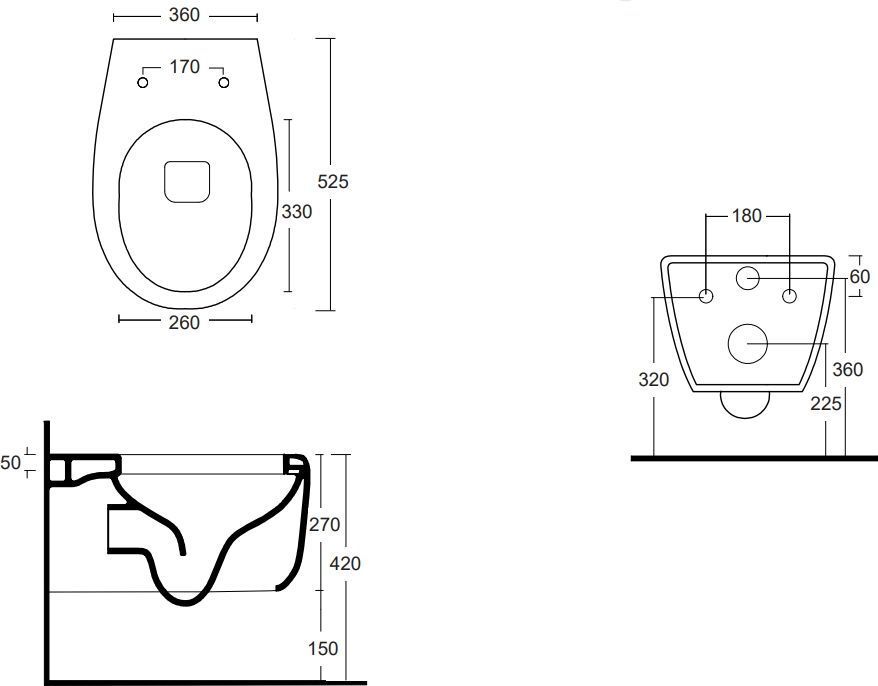 Характеристики унитаз безободковый,унитаз подвесной White Ceramic (W0203FM)