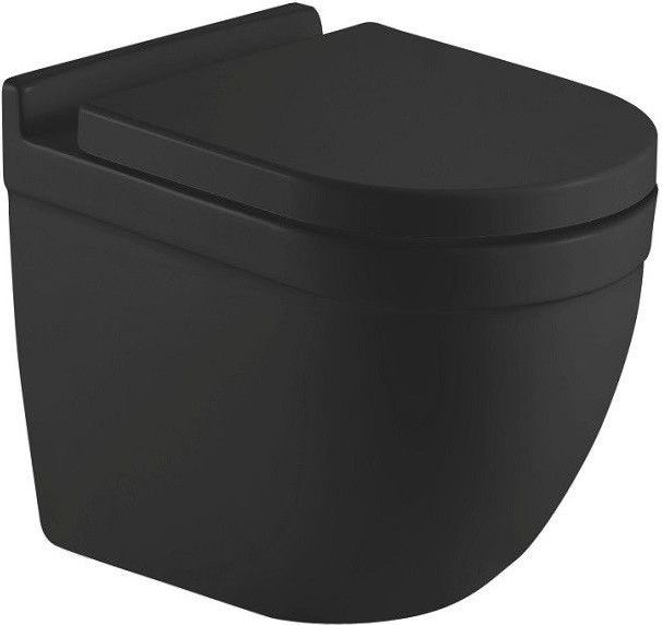 Унитаз подвесной CeramaLux Rimless 2198MB с крышкой микролифт, черный матовый