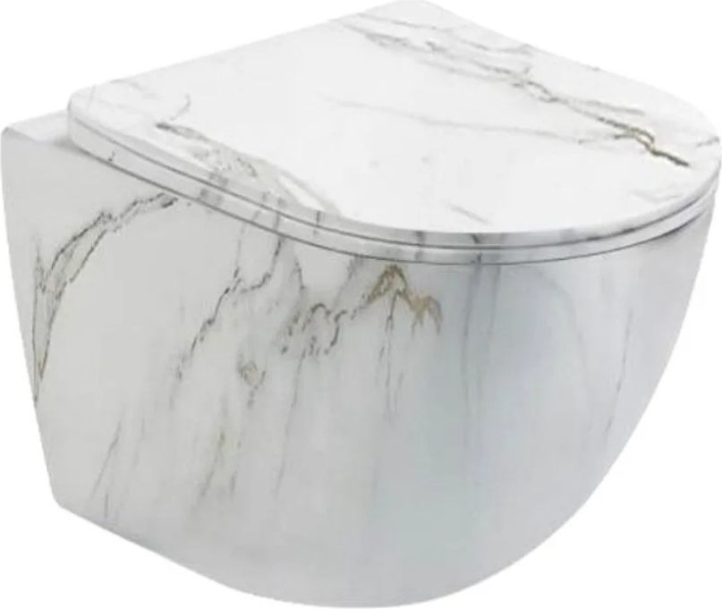 Унитаз подвесной CeramaLux Rimless 2213-K с крышкой микролифт, белый мрамор