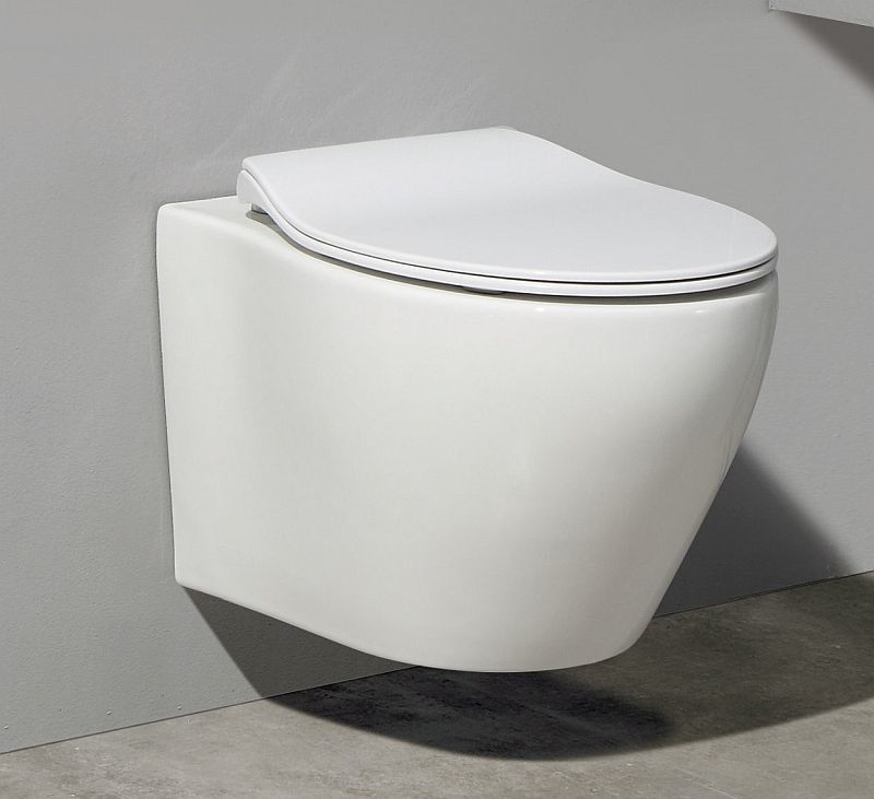 Унитаз подвесной CeramaLux Rimless CL-2101 c сиденьем микролифт, цвет белый.