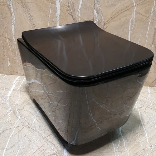 Унитаз подвесной CeramaLux Rimless NS5170-18 c сиденьем микролифт, цвет черный глянцевый.