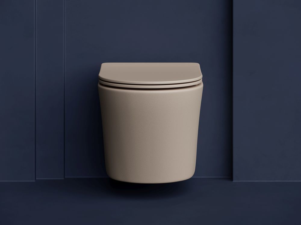 Унитаз подвесной Ceramicanova Balearica Rimless CN6000MC, глубокий смыв, с крепежом для полностью скрытого монтажа, ультра тонким с сидением и крышкой с функцией плавного закрытия, дюропласт, цвет капучино матовый.