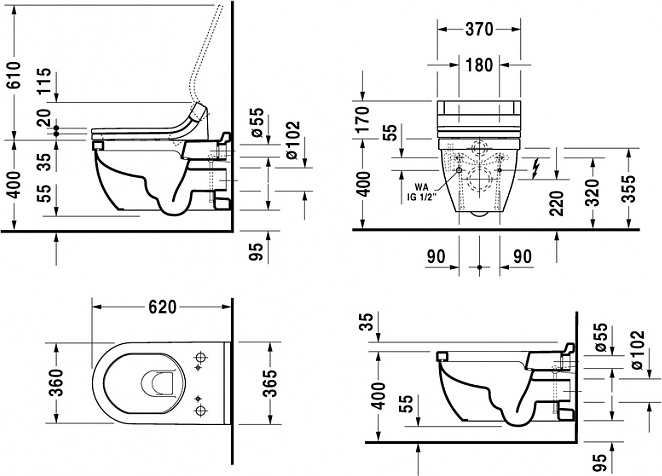 Унитаз подвесной Duravit Starck 3 2226590000, в комплект входит крепление Durafix для скрытого монтажа и компоненты для подключения SensoWash. Сиденье с крышкой приобретается отдельно.
