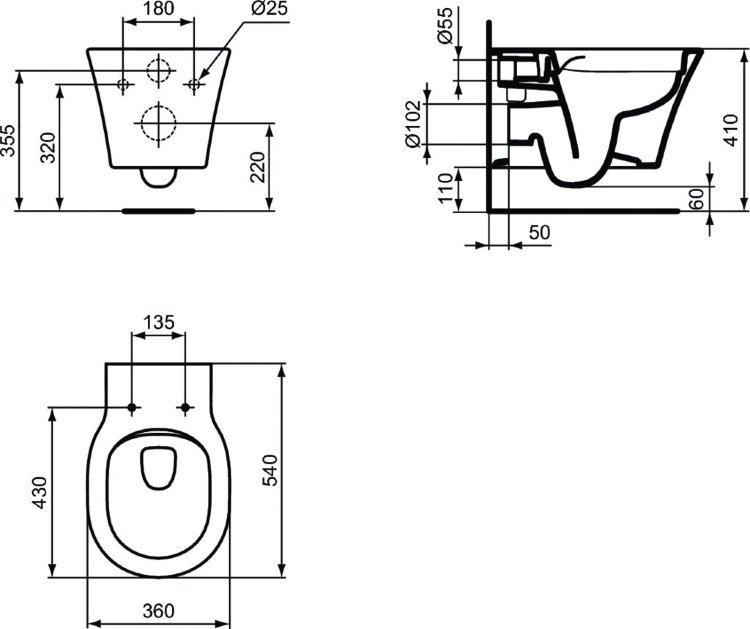 Характеристики унитаз безободковый,унитаз подвесной Ideal Standard (E2288V3)