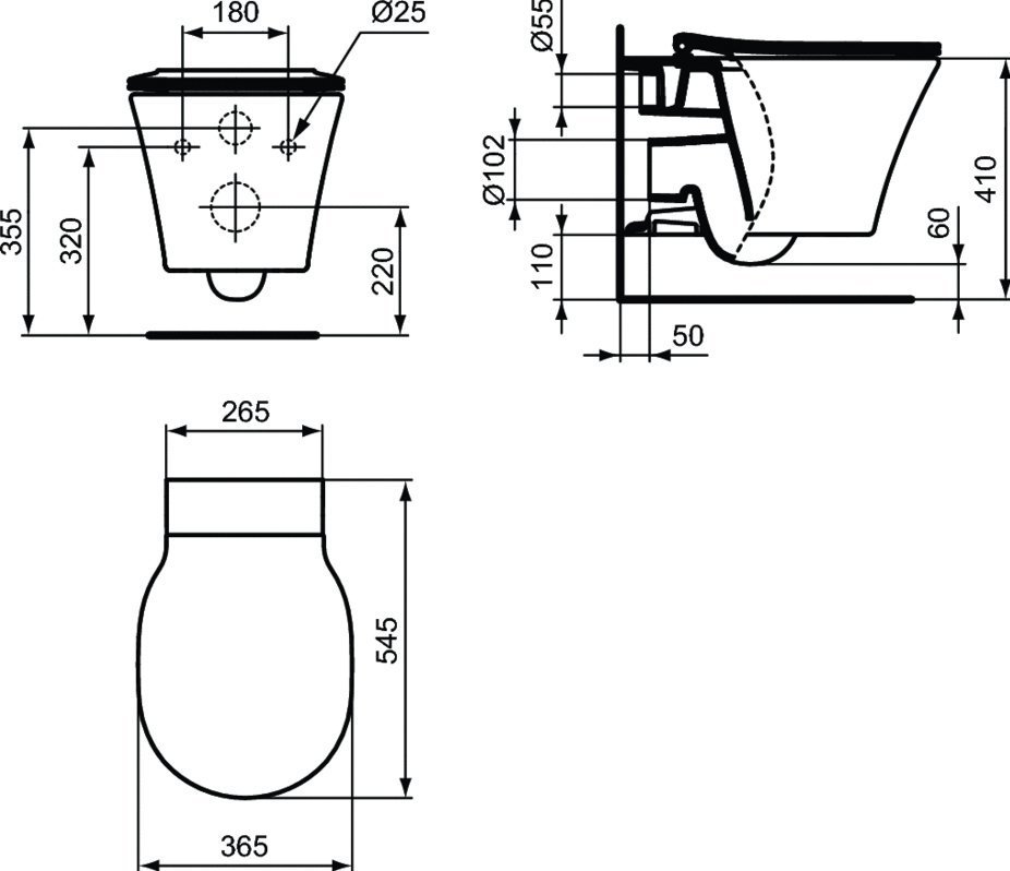 Характеристики унитаз безободковый,унитаз подвесной Ideal Standard (K819501)