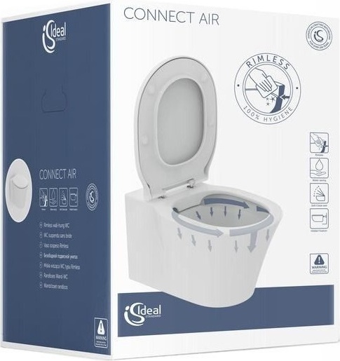 Унитаз подвесной Ideal Standard Connect Air Rimless K819501, в комплекте быстросъемное сиденье с крышкой микролифт E036801 и крепеж TT0299598, цвет белый.