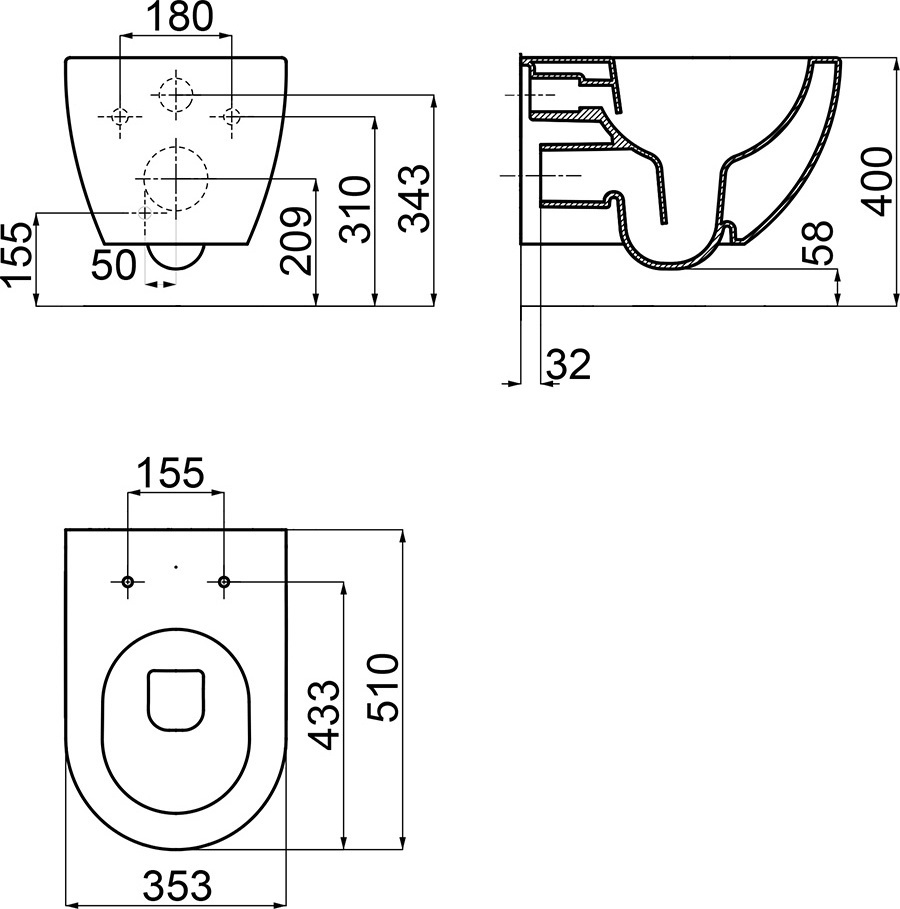 Характеристики унитаз безободковый,унитаз подвесной Ravak (X01535)