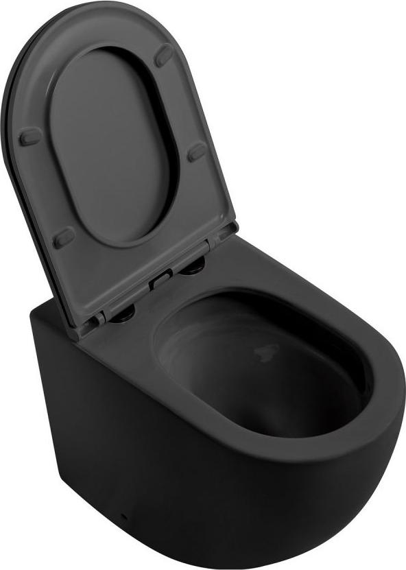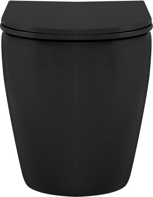 Унитаз приставной безободковый Abber Bequem AC1111TMB (выпуск горизонтальный), сиденье с крышкой микролифт, цвет чёрный.