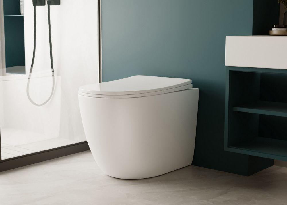 Унитаз приставной безободковый Abber Bequem AC1111TMW с крышкой микролифт, белый матовый (выпуск горизонтальный)