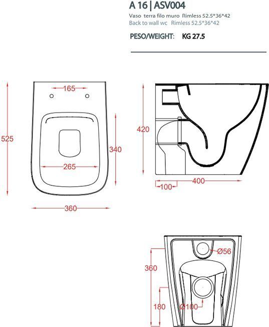 Описание унитаз приставной ArtCeram ASV004 39 00