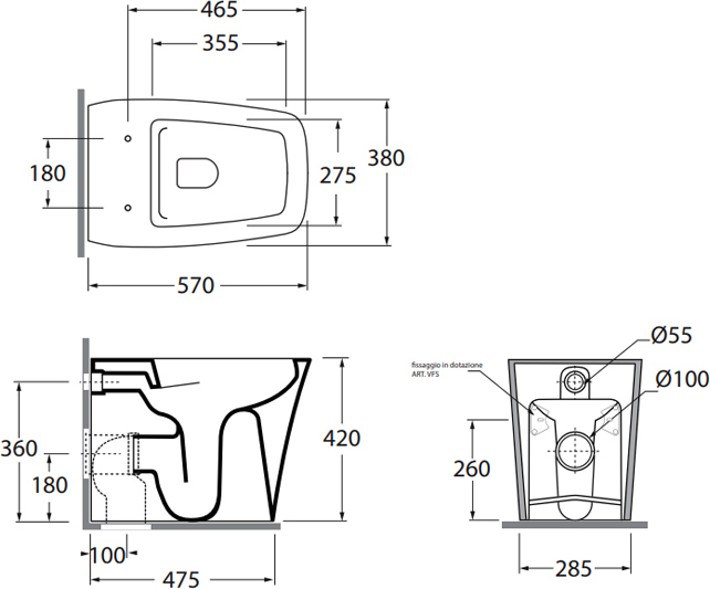 Характеристики унитаз безободковый,унитаз приставной Azzurra (HEVCTPE00000BI;HER1800/F)