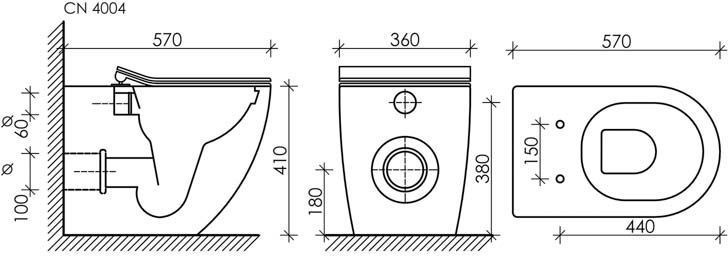 Характеристики унитаз безободковый,унитаз приставной Ceramicanova (CN4004)