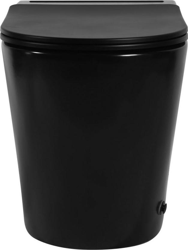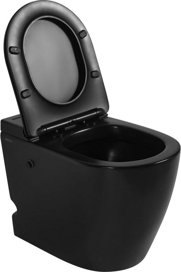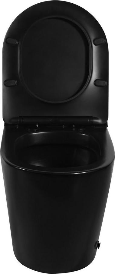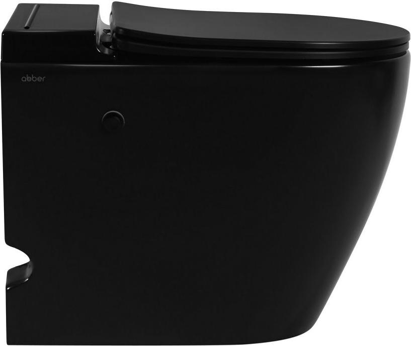 Унитаз приставной безободковый импульсный Abber Bequem AC1115PMB с крышкой микролифт, чёрный матовый (выпуск горизонтальный)