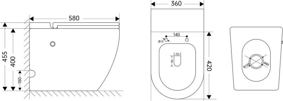 Характеристики унитаз безободковый,унитаз приставной Abber (AC1115PMB)