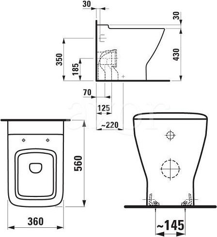 Характеристики унитаз приставной Laufen (8.2370.1.000.000.1)