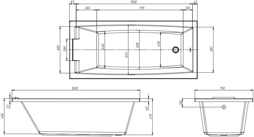 Ванна акриловая 1Marka Aelita MG 165x75 см
